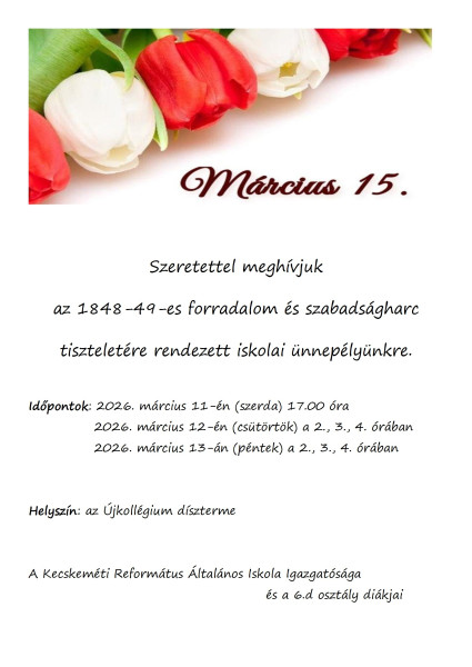 1848-49-es forradalom és szabadságharc iskolai ünnepély meghívó